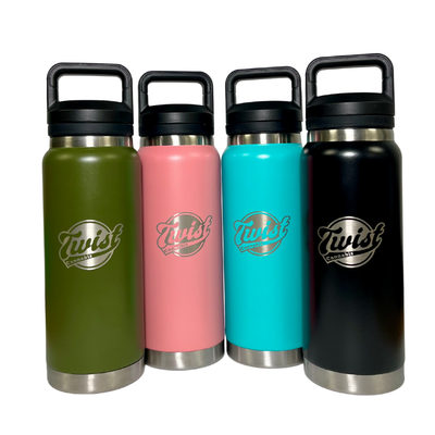 Stay hydrated in style with the TWIST 800ml Insulated Bottle — built for long days, late nights, and everything in between. Designed with double-wall vacuum insulation, this bottle keeps drinks ice-cold for hours or piping hot when you need it. The durable stainless steel body can handle daily wear, while the sleek matte finish and bold TWIST branding make it a standout wherever you take it. Available in four colours - Black - Olive Green - Baby Blue - Hot Pink